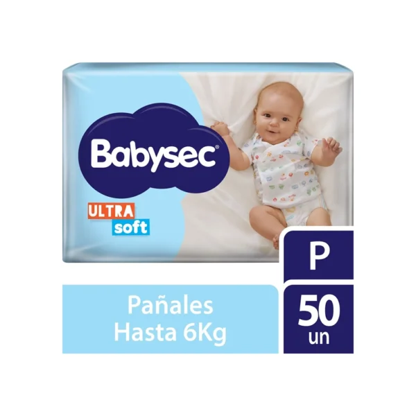 Babysec Ultra Soft Talle P x50, pañales pensados para los primeros meses del bebé, con materiales suaves y ajuste confortable.