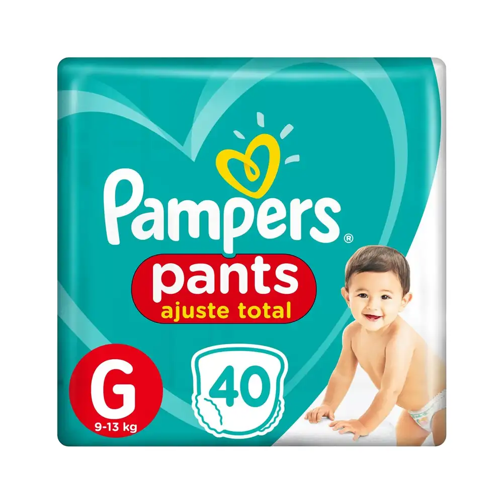 Pañales Pampers Pants Ajuste Total, ideales para bebés en movimiento. Fáciles de cambiar, poner y quitar gracias a su diseño tipo pantalón. Confortables, absorbentes y con gel mágico para mantener a tu bebé sequito hasta por 12 horas. Ajuste total y libertad de movimientos para un día sin preocupaciones.